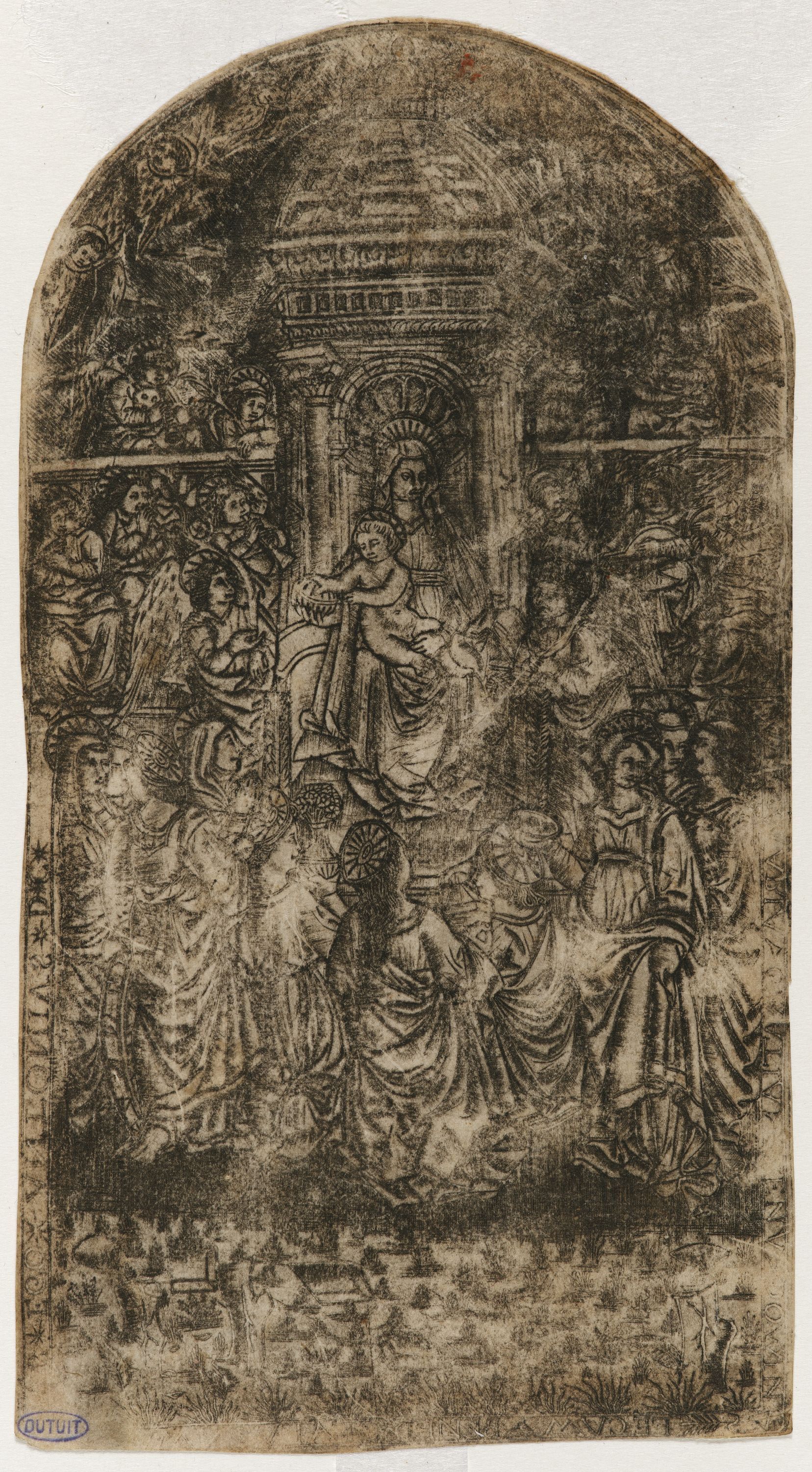 Plaque niellée : Vierge à l’Enfant entourée d’angesVasari précise cette première indication dans un passage de la Vie qu’il consacre simultanément à Marc-Antonio Raimondi et d’autres graveurs :