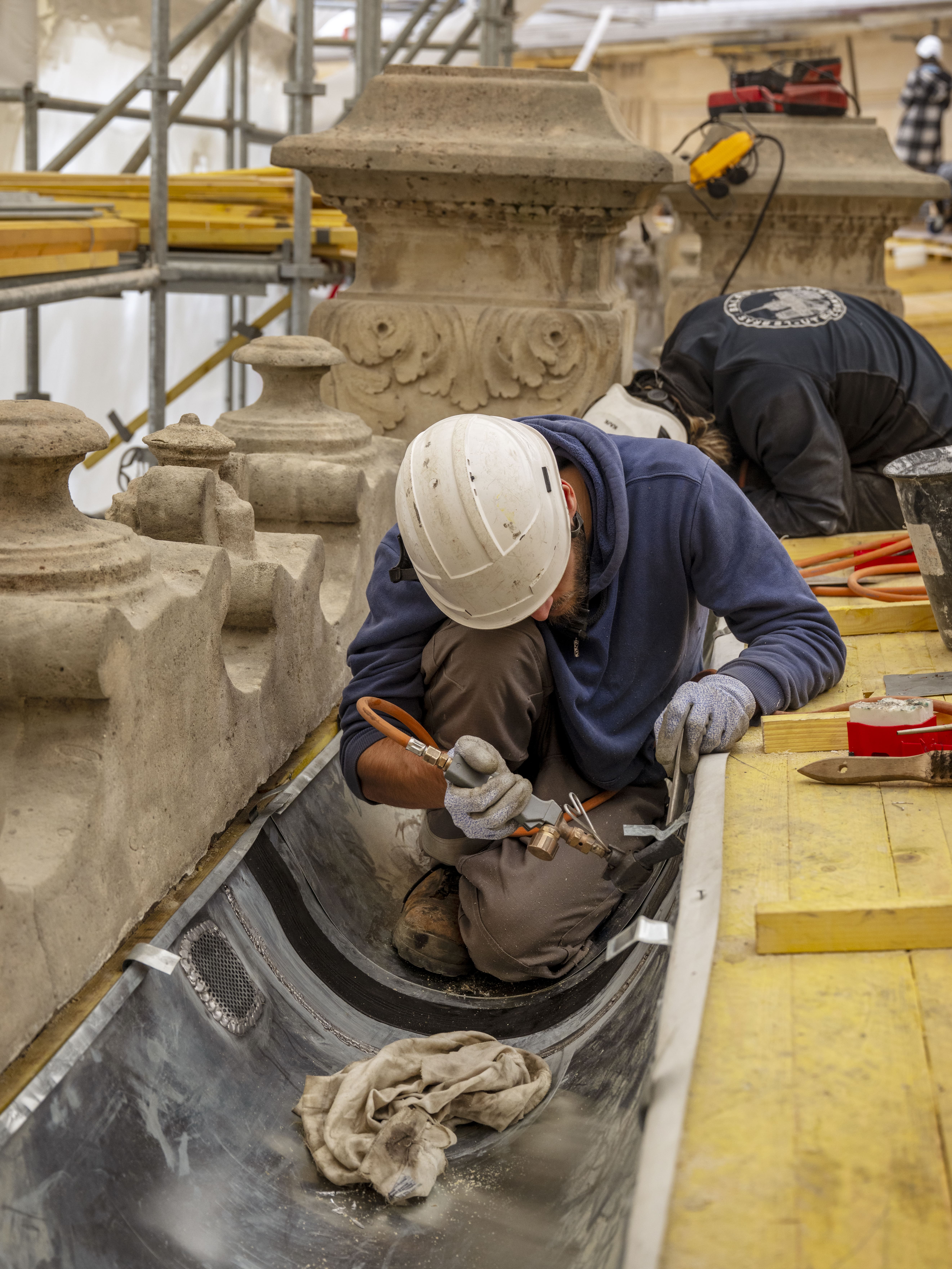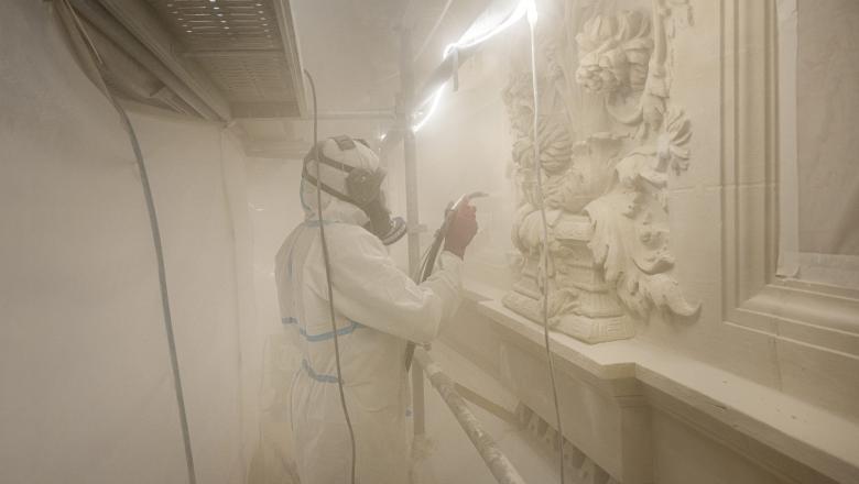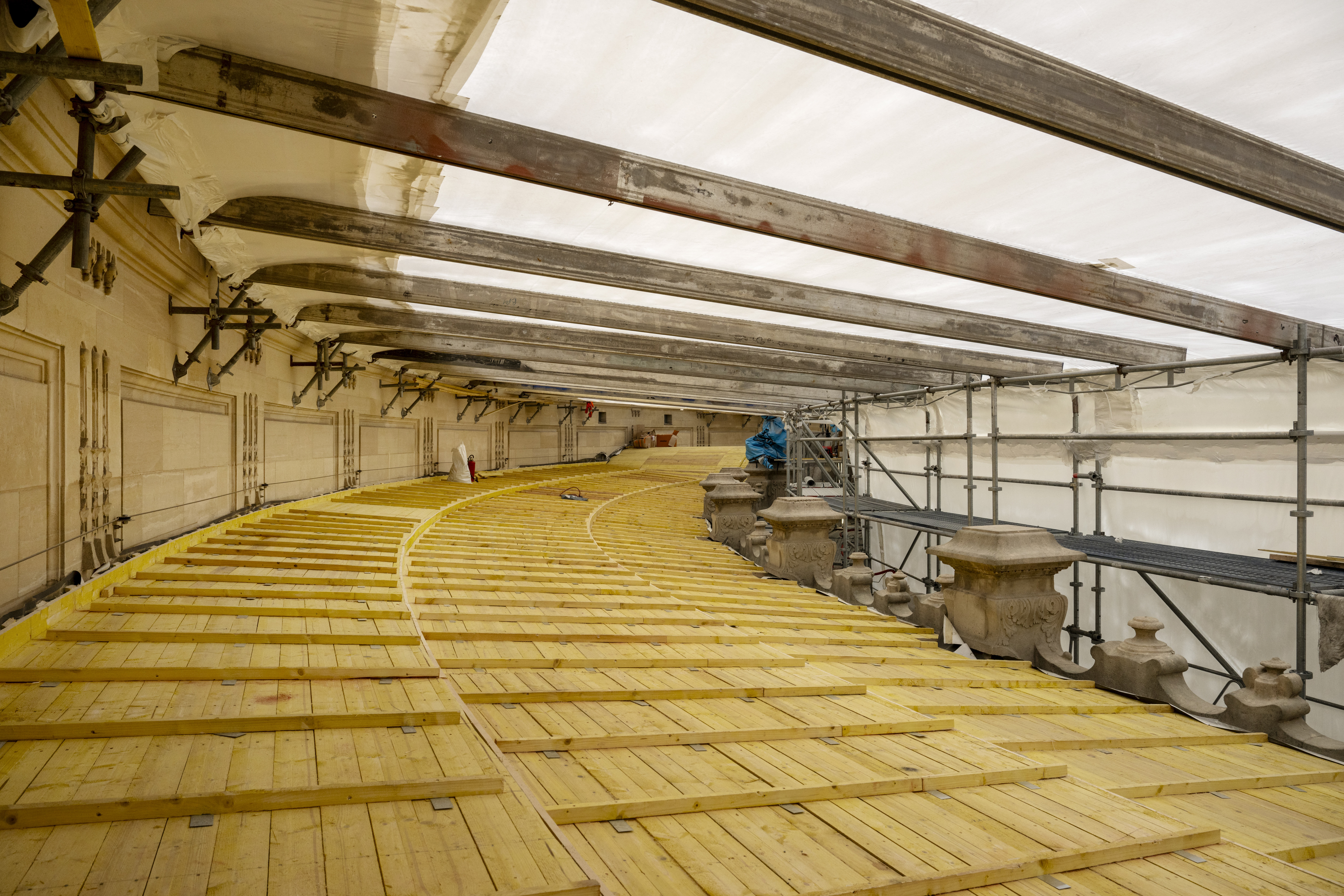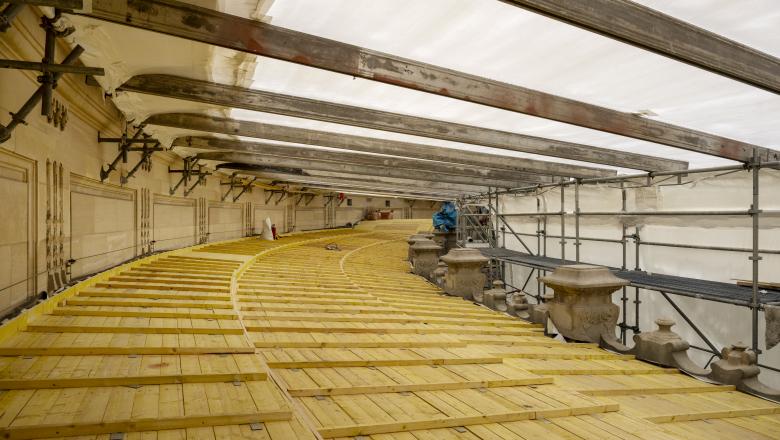 Confiée au groupement Aline Berelowitsch et menée par Isabelle Auclair, la restauration de la fresque du péristyle s’inscrit dans une démarche d’excellence, alliant savoir-faire traditionnel et technologies de pointe. L’objectif est de conserver l’authenticité des matériaux d’origine tout en utilisant des procédés innovants et respectueux de l’environnement. Ce projet est ainsi l’un des premiers chantiers de cette envergure à intégrer les dernières avancées en matière d’éco-restauration, garantissant une intervention durable et responsable.