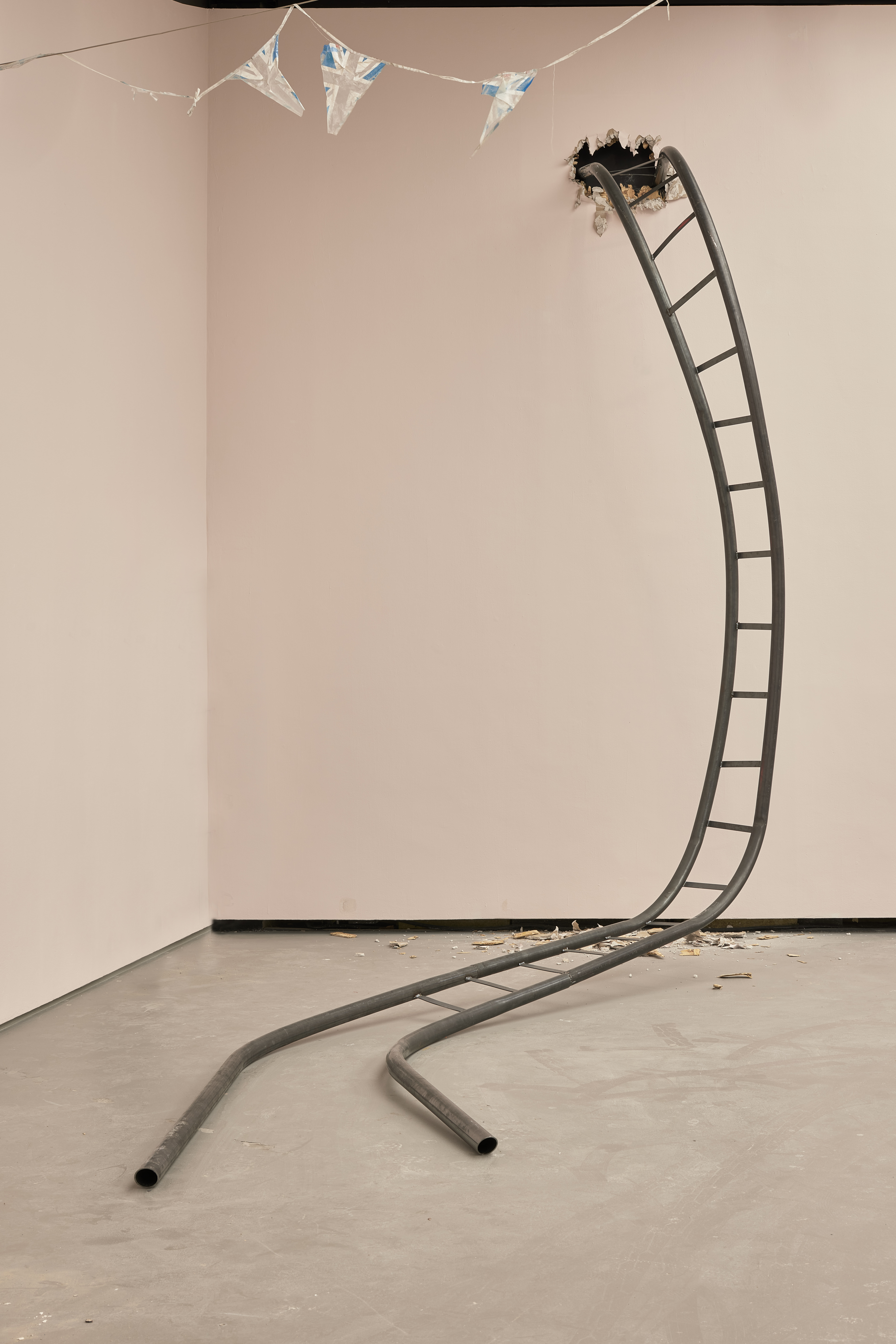 In Jesse Darling’s VANITAS (2024), metal barriers are contorted, twisted and stretched from their original shapes. Commonly used to inhibit free movement, to Darling metal barriers symbolize division and official control. By distorting them, the artist highlights the vulnerabilities of the power structures they represent. Presented in London for Darling’s 2023 Turner Prize exhibition under the title Come On England, the installation is reinterpreted in Paris in a special presentation together with the glass cases of his seminal work Still Life (2017 – ongoing), containing flowers which gradually decay. The project critiques privatization and economic exclusion, underscoring how both power structures and natural life cycles are vulnerable to inevitable decline and change.